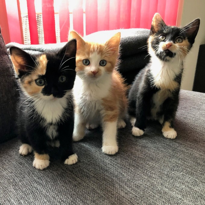 Tsonga, Tsitsi en Tsuki waren drie prachtige kittens zonder medische problemen, een droomnestje voor een beginnend pleeggezin!