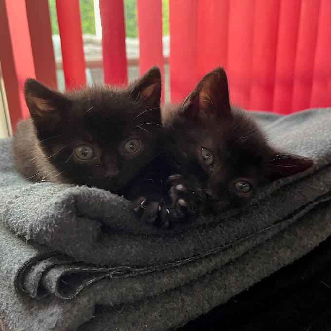 Zwart kittentje Whopper was een bijzonder aanhankelijk katje, en ook zijn zwarte pleegzusje Xia was een schatje!